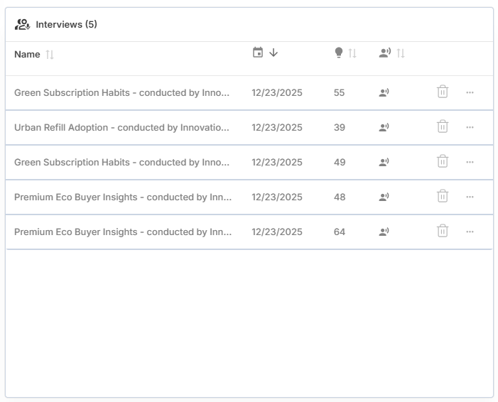 Interview Templates – Create and manage interview question templates, either manually or with AI, to support consistent customer discovery.